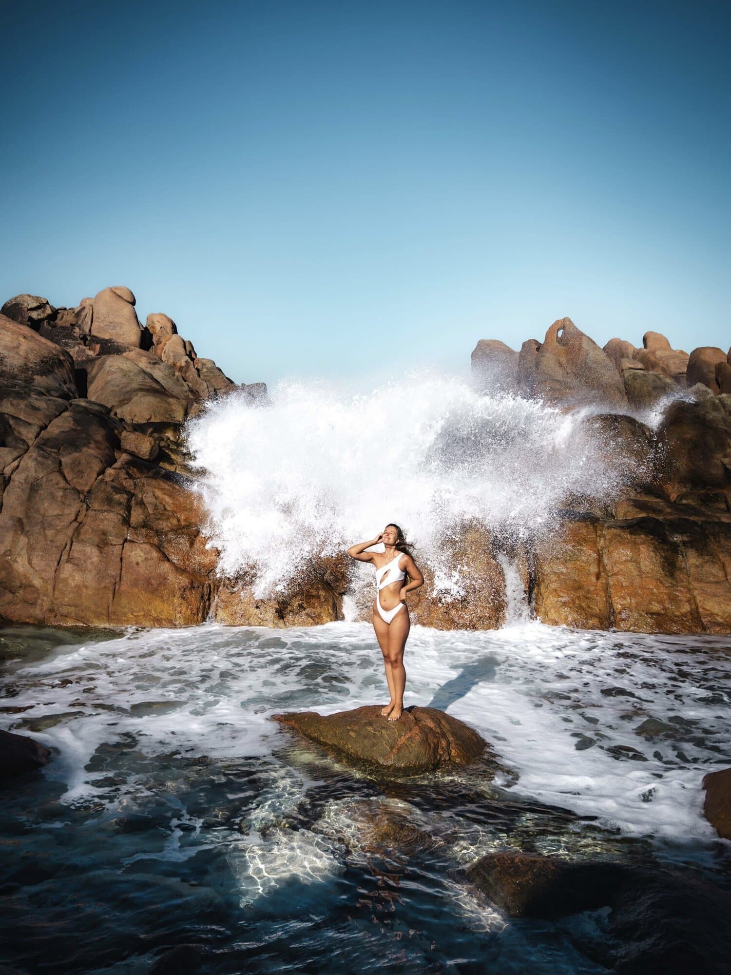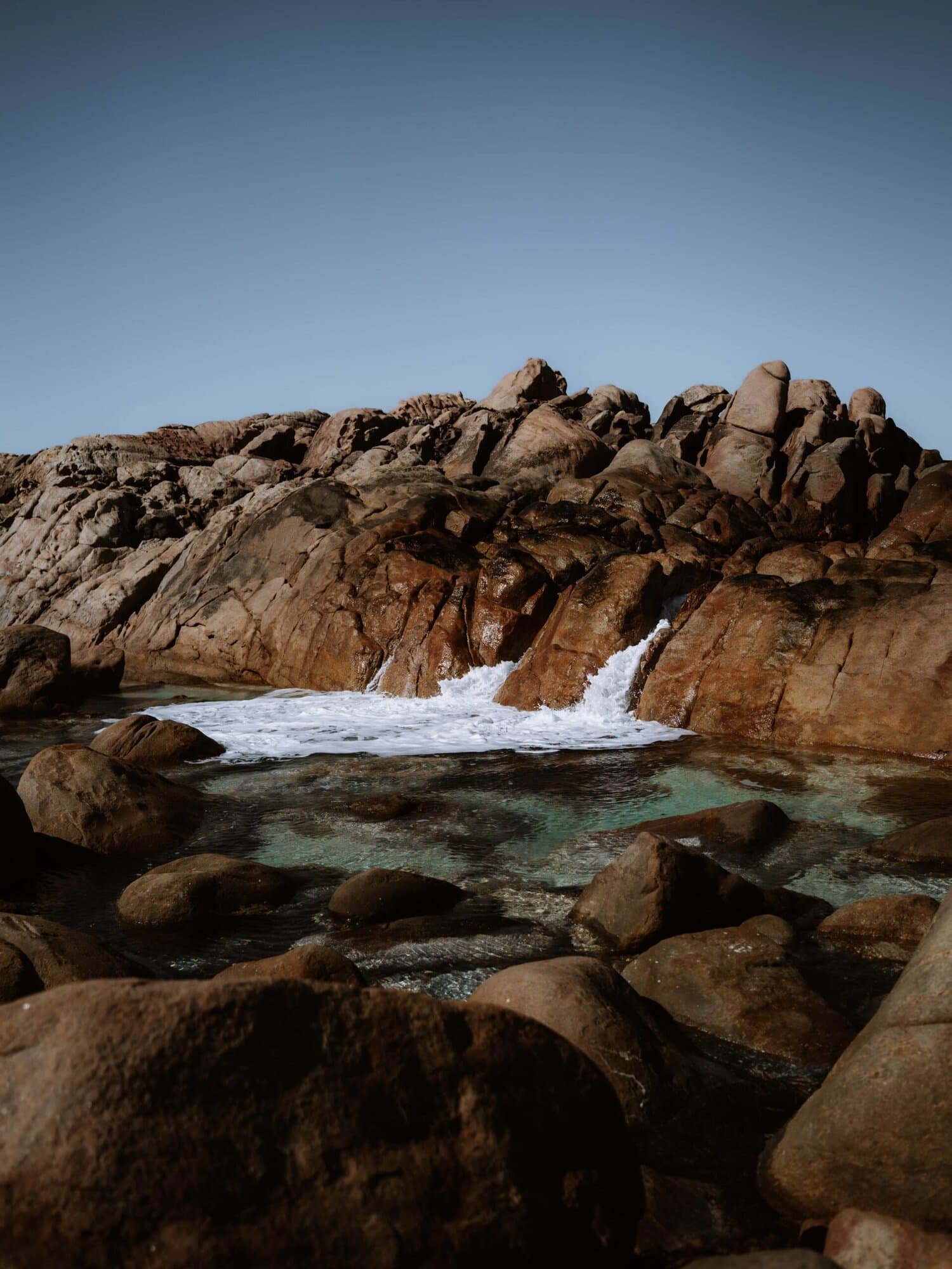 Ein weiterer bekannter Spot und mein Highlight für die Region Margaret River, ist das Indijup Natural Spa. Dabei handelt es sich um eine natürliche Felsformation, in der sich Wasser sammelt und bei stärkerem Wellengang die Wellen über die Felsen schwappen und dadurch Bläschen, wie in einem Whirlpool, erzeugen. Richtig cool, aber passt auf die Steine auf, die sind teilweise rutschig.